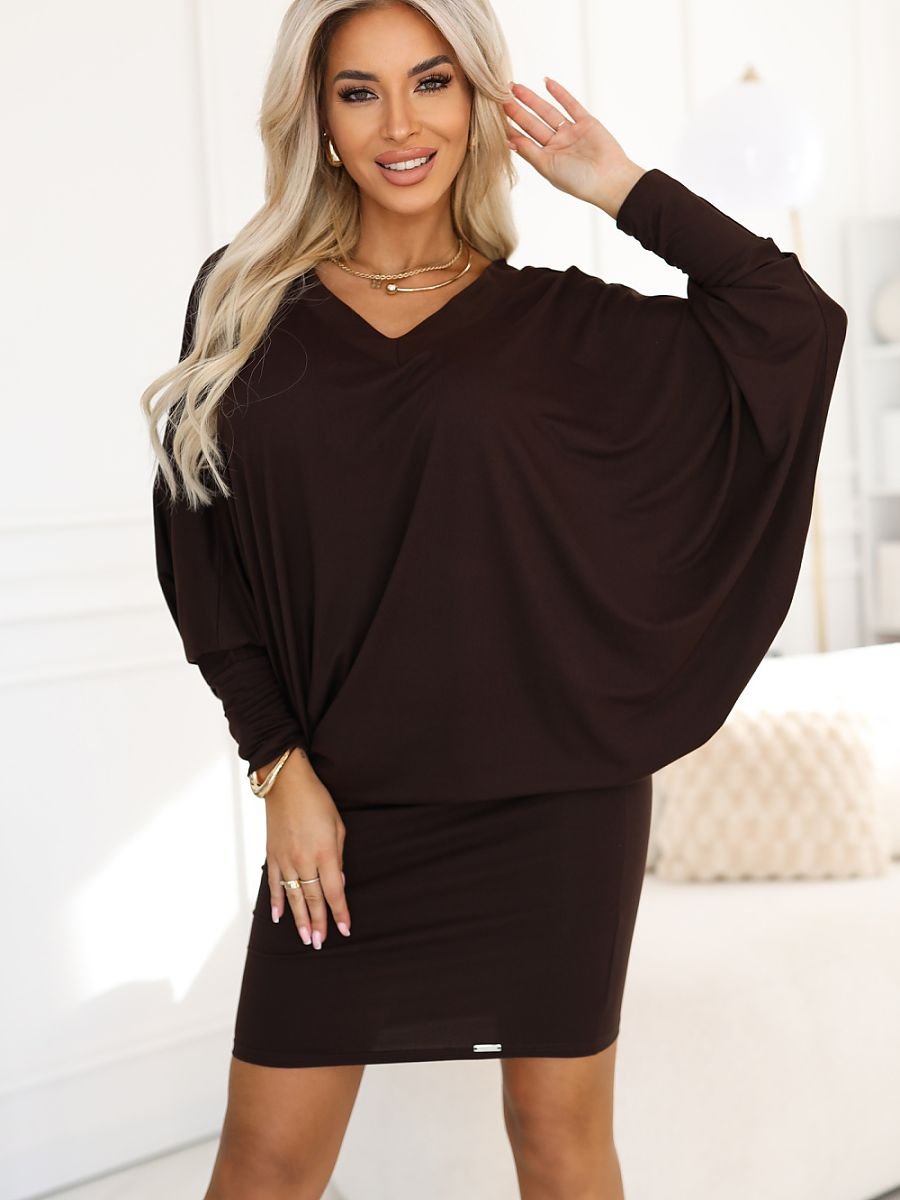 Questo vestito è una combinazione magistrale di tendenze e funzionalità. Abbiamo optato per un top oversize in stile pipistrello, che garantisce comfort durante tutto il giorno. Lo abbiamo abbinato a un fondo corto e aderente, che ingrandisce in modo intelligente le gambe e modella la silhouette. Il profondo scollo a V e il nobile colore marrone scuro (cioccolato) garantiscono che tu appaia perfetta senza sforzo. Perfetto per le donne che apprezzano la qualità polacca e desiderano sentirsi libere, mantenendo allo stesso tempo uno stile elegante. Prodotto in Polonia dalla marca Numoco. Scegliendo questo modello, otterrai la garanzia di qualità e supporterai un marchio nazionale.
