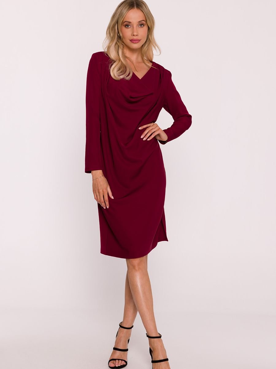 Un elegante abito aderente realizzato in un tessuto liscio con una finitura delicata e leggermente lucente. Il modello incanta con un sensuale scollo a V che si adatta dolcemente alla silhouette, sottolineando il carattere femminile dell’abito. Le maniche lunghe conferiscono classe all’intero look e fanno sì che la creazione sia perfetta sia per le uscite serali che per gli incontri eleganti. Il taglio più ampio nella parte superiore e più stretto in fondo modella splendidamente la figura, mentre la cintura elastica dello stesso materiale enfatizza il punto vita. La parte inferiore dell’abito ha un taglio dritto con una delicata incisione sul lato che garantisce libertà di movimento. L’abito non ha chiusure, viene infilato comodamente dalla testa. Progettato e realizzato in Polonia, con cura per ogni dettaglio.
