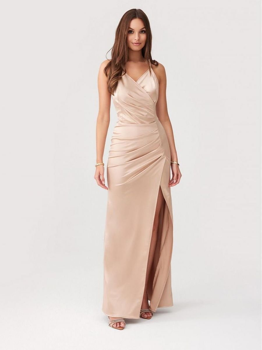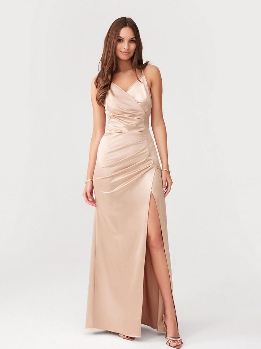 Il vestito maxi Lamelia con schiena scoperta è realizzato in un tessuto delicato e piacevole al tatto. Il modello si caratterizza per la sua vestibilità aderente. Ha una scollatura intrecciata che accentua la zona del décolleté e si unisce abilmente alla scollatura sulla schiena. Tutto grazie alle spalline che passano attraverso la scollatura fino alla schiena, dove si incrociano. Chiuso sul retro con una cerniera invisibile. L’apertura sul lato della gamba le dà un tocco di grinta, conferendo al look carattere. La lunghezza del vestito arriva alle caviglie, conferendogli eleganza e classe. Il vestito ha una vita elastica che valorizza la silhouette e garantisce il comfort durante l’uso. Il prodotto è realizzato e cucito in Polonia.