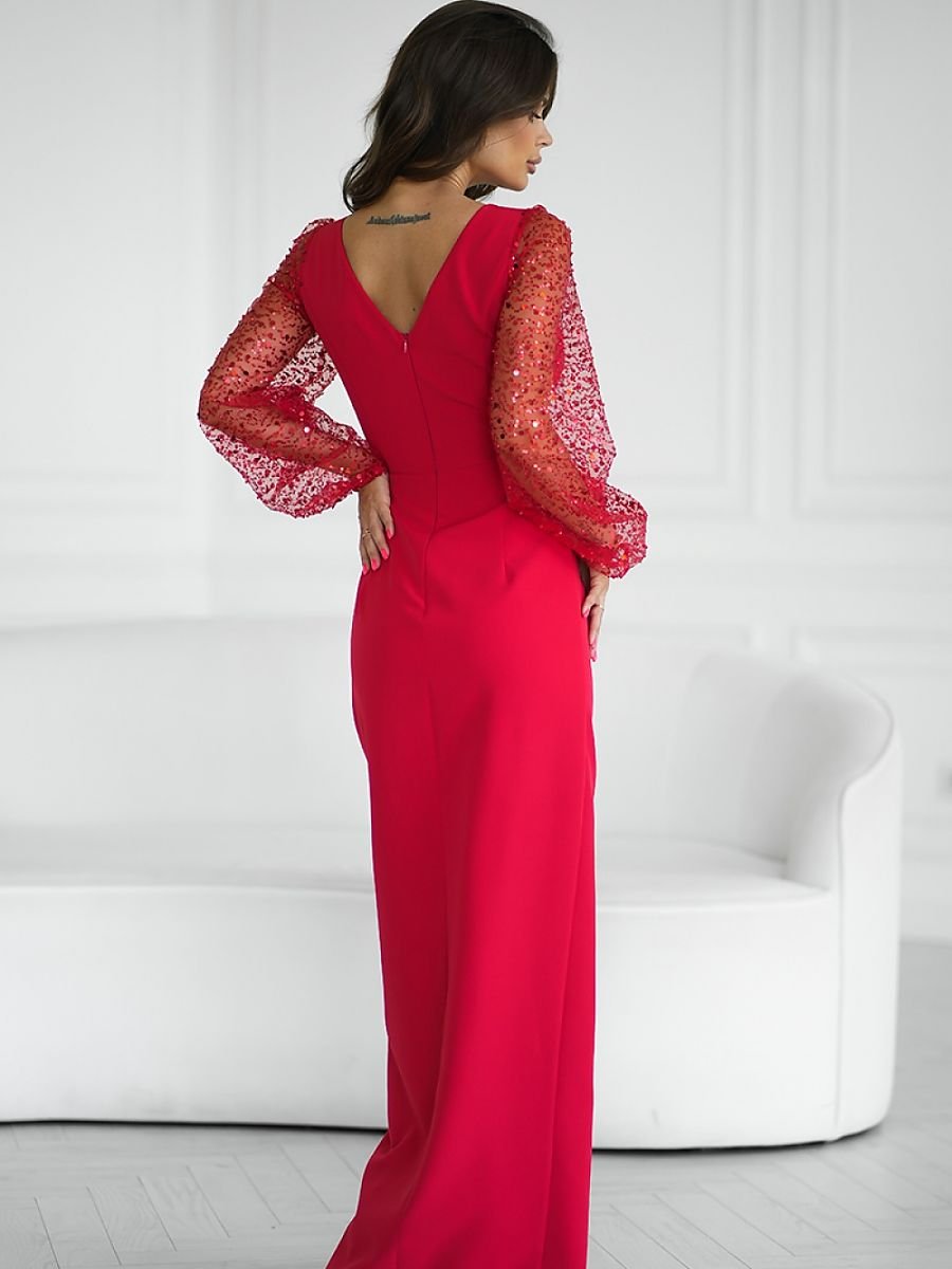Fenomenale creazione con due maniche di paillettes. Delicata scollatura a forma di cuore, che espone leggermente il busto. La parte inferiore dell’abito è a strati, con un sorprendente spacco sulla gamba. Le maniche di paillettes aggiungono fascino e chiczza, completando perfettamente la creazione. L’abito è foderato e si chiude con una zip coperta. Disponibile in colori incantevoli.