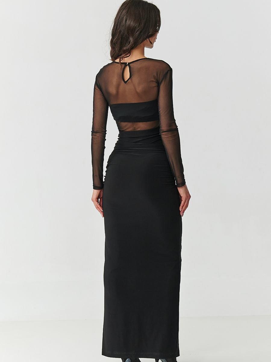 Entra nel mondo dell’eleganza che ipnotizza al primo sguardo. Questo abito nero lungo con rete è una proposta per le donne che non temono di brillare e desiderano sentirsi assolutamente speciali. Il taglio aderente enfatizza perfettamente la silhouette, mentre le pieghe delicate in vita modellano la figura, conferendole una leggerezza sensuale. La parte superiore trasparente in rete delicata conferisce all’abito un carattere misterioso dove l’eleganza si unisce alla coraggiosa. Inoltre, sotto il tulle c’è un top indipendente che puoi utilizzare per altre occasioni. Lo spacco sensuale svela la gamba ad ogni passo, aggiungendo un magnetismo femminile all’insieme. Il bottone dorato sul retro non solo svolge una funzione pratica, ma conferisce all’abito un carattere gioiello che contrasta splendidamente con il nero profondo del materiale. Questo accento delicato conferisce all’abito un aspetto lussuoso, mentre allo stesso tempo diventa unico in ogni dettaglio. Non è solo un semplice abito da sera, ma una creazione in cui sentirai che tutti gli sguardi sono rivolti proprio a te. Perfetto per matrimoni, balli, feste di fine anno o cene eleganti, ti farà sempre distinguere per stile e sicurezza in te stessa. Audace, ipnotico, perfetto per la donna che desidera fare un’impressione sbalorditiva e lasciare un ricordo indelebile, proprio come l’abito stesso. Tulle: 100% poliestere.